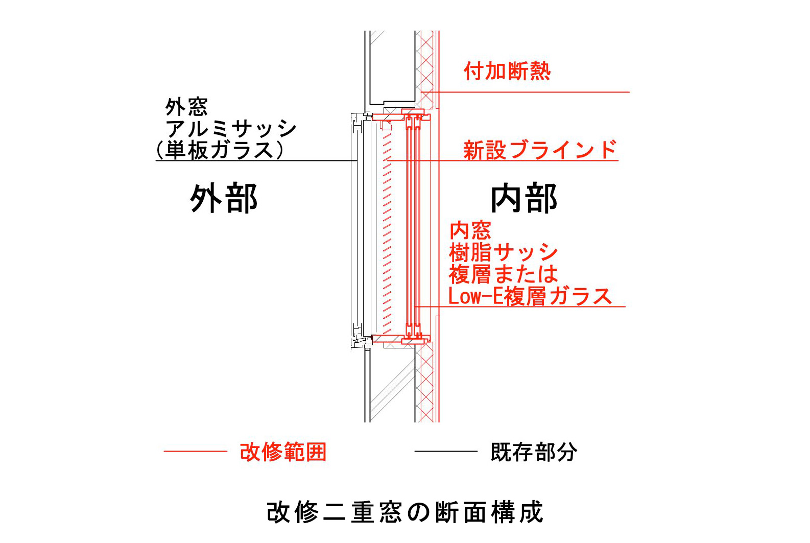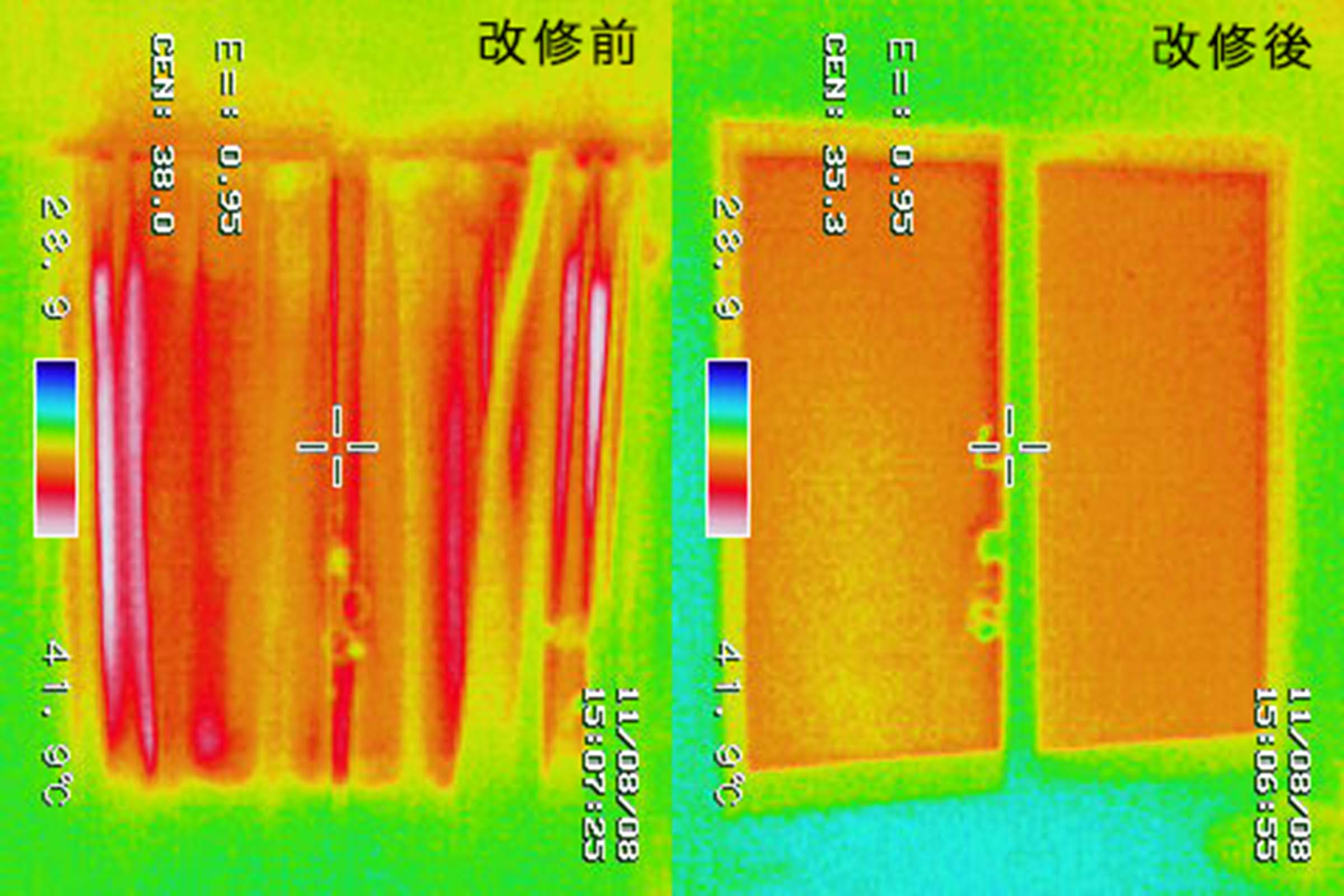 これは機能的にはヨーロッパなどでよく目にするダブルスキン(二重外皮)構造と似ており、実証の結果、エアコンなしの状態で、内側がカーテンの場合に比べて窓ガラスの表面温度が4℃程度抑えられることが確認できました。