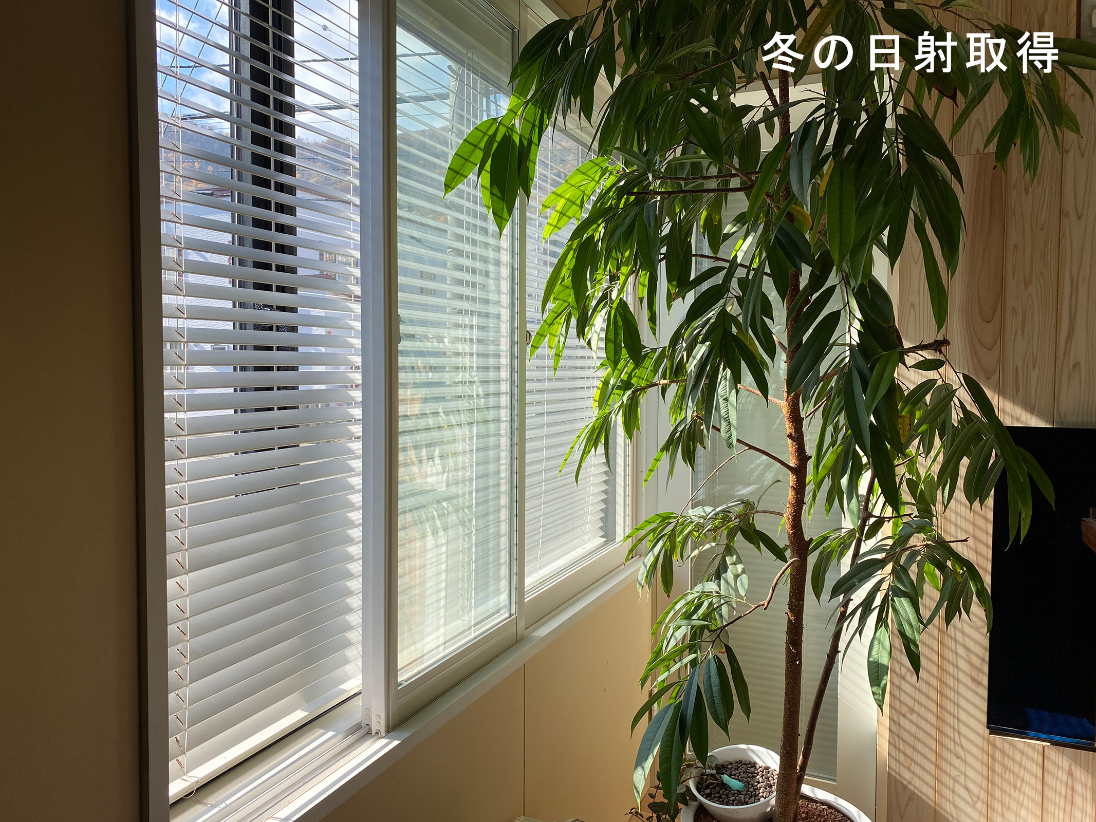 一方、冬はブラインドのスラットを夏とは逆の角度にすることで積極的に日射取得できるため、カーテンとは異なり、プライバシーを確保しつつも季節に応じた使い分けができるという利点があります。