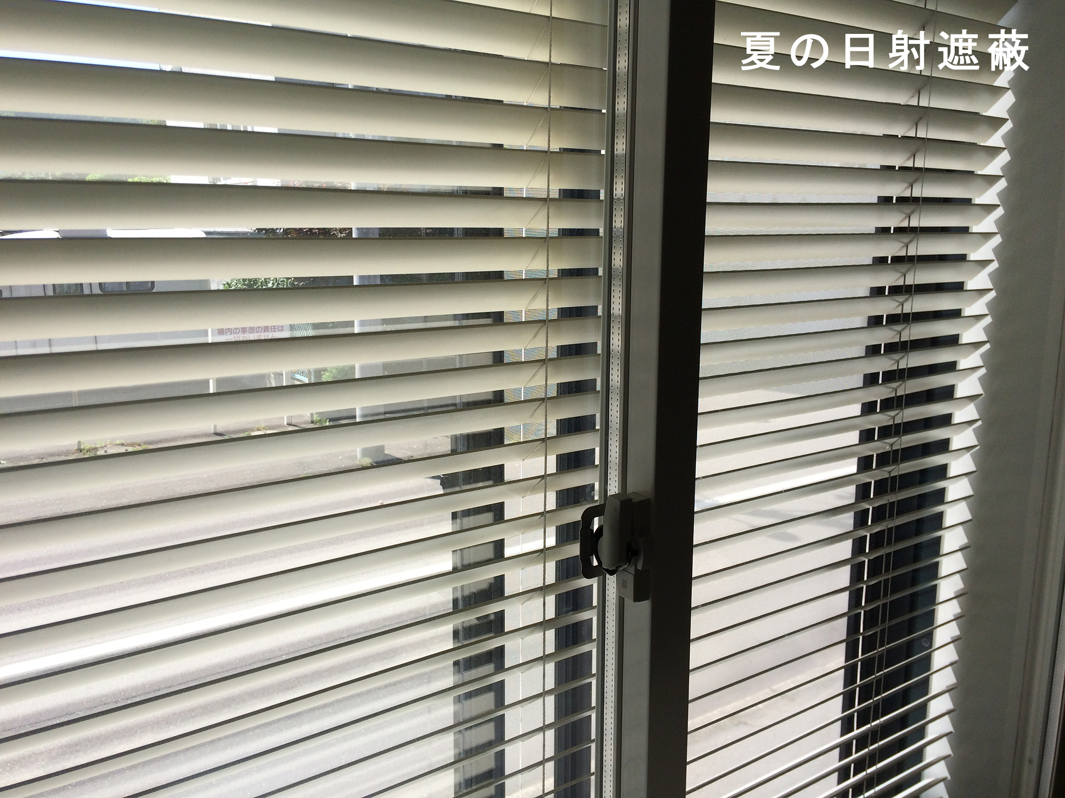 その二重窓間にブラインドを取り付けると、内窓の外側で日射遮蔽でき、日射が直接室内に入ることを抑制するため、夏季の室内温度上昇とエアコン負荷の低減が期待できます。これが、弊社が考案した二重窓間ブラインドという手法です。