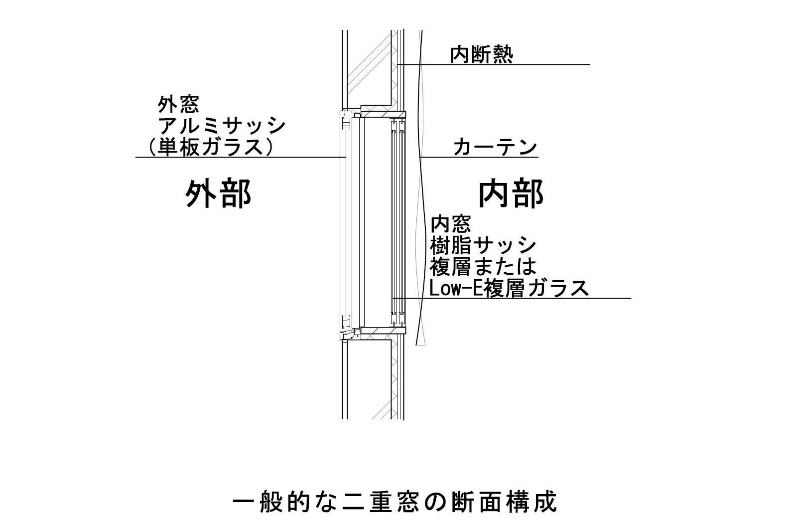 北海道の住宅によく使われる二重窓は、元々、室内側のサッシの断熱性能が悪いために二重になったわけですが、今は室内側の樹脂サッシがほとんど断熱性能を担っています。省エネ対策の内窓付設による二重窓も同じ原理です。